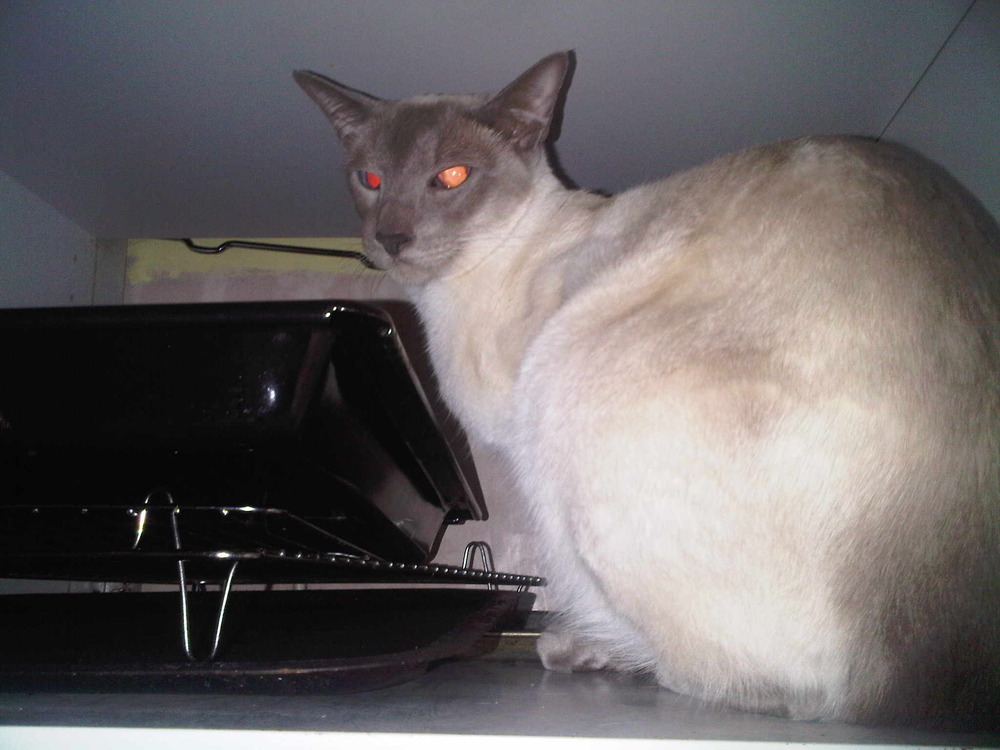 We spent ¾ hour looking for Willow this morning and were starting to get worried. The clever boy had climbed on top of the full-height kitchen cupboard, slipped down the gap at the back and cuddled up to the roasting pans. We lifted him down and *made* him have a cuddle. Integration is a delicate,slow process with this little one.