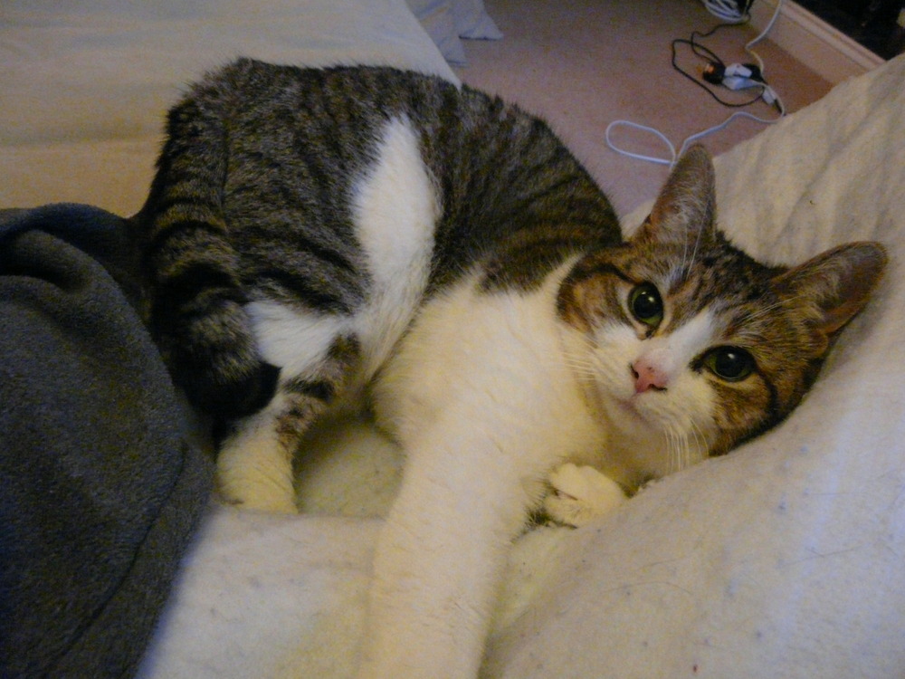 Alex Bellars and his wife Catherine have a new cat in the house. Aeryn (what a beautiful name!) arrived from the cat shelter just a couple of weeks ago and she has been very shy. But if you look carefully, you will see that she is allowing someone to rub her tummy, a sure sign of trust from any cat. She’s starting to settle right in. Cats know when they’re on to a good thing.