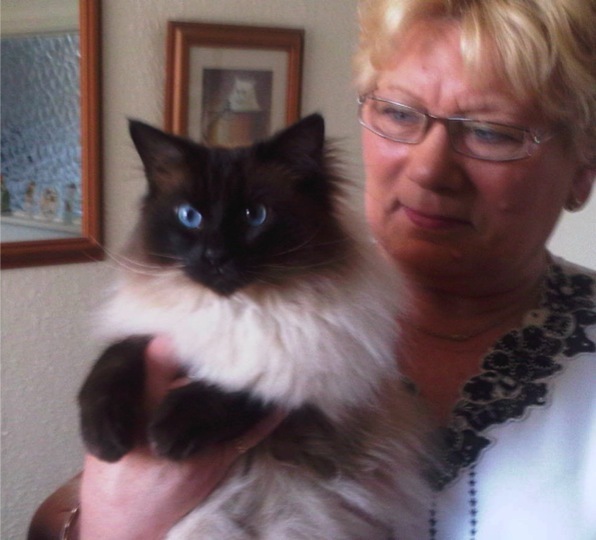 Cody is an 8 year-old seal-point Ragdoll who lives with Linda, right next door to my lovely mother-in-law Margaret and sister-in-law Carol. I only met him for the first time this evening and he is so soft, that you can hardly tell if you are touching him. Linda brushes him every day and it really shows; his fur is perfect.
