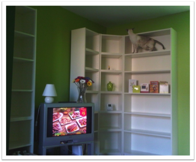 We have been renovating our house for almost two years and it’s been a long, expensive haul. We run out of money/energy from time to time. But this week has seen some progress. We’ve bought lots of Billy and Benno bookcases and CD storage towers from Ikea (15 of them) and have toiled away in the warmth to build them.
