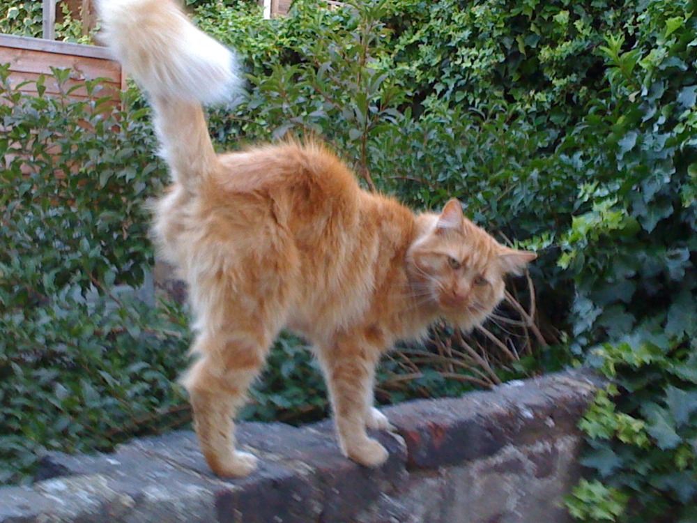 3LJ seems angry a lot, but he’s actually only lashing his tail for balance. He’s very friendly and comes to visit whenever the back door is open. I’m sure this is nothing to do with the fact that we spoil him rotten with bacon and chicken treats!”