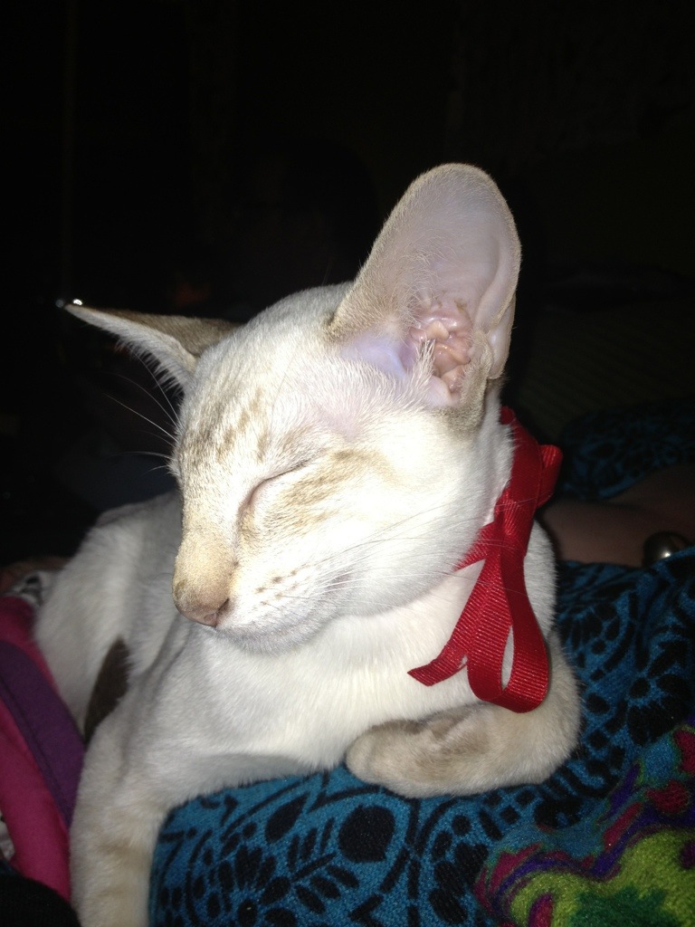 A Cat A Day 2013 #97 April 7, 2013 by Fiona Joyce I put a chocolate box ribbon bow on Milka and he didn’t turn a hair. In fact, he just fell asleep. Share this: Click to share on X (Opens in new window) X Click to share on Facebook (Opens in new window) Facebook Like Loading... Related