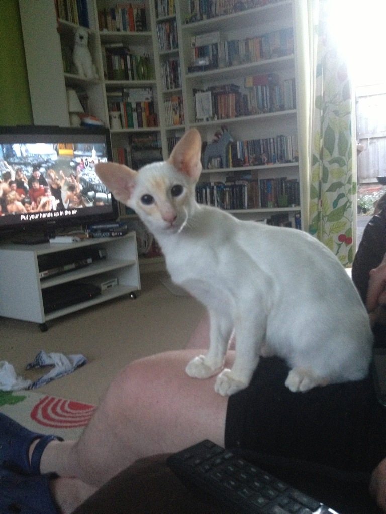 A Cat A Day 2013 #164 June 13, 2013 by Fiona Joyce Relaxing with a bit of Harry Potter tonight, because I’m conducting Y10 GCSE Speaking Controlled Assessments tomorrow, so no classroom lessons to prepare. Here you see Percy on John’s shorts-clad knee. What a cutie (Percy, that is). Share this: Click to share on X (Opens in new window) X Click to share on Facebook (Opens in new window) Facebook Like Loading... Related