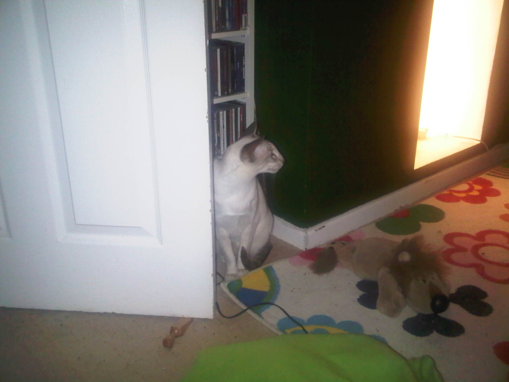 Cosmo, his latest cuddly toy victim and some living room untidiness.