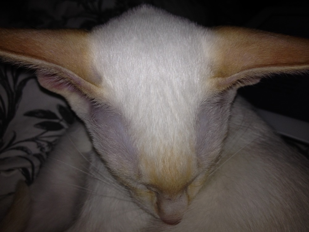 Flossie with her chin sinking down into her fur as she falls asleep. Her ginger ears are just ridiculous in this picture, aren’t they?