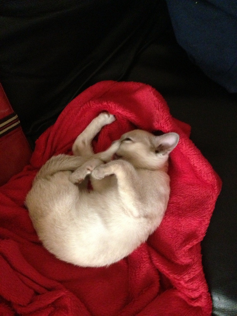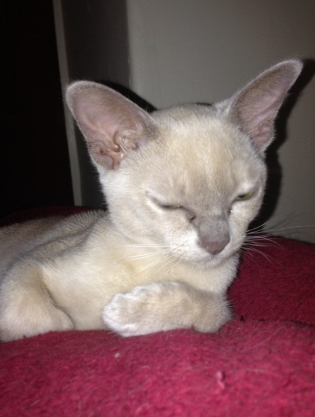 Ophelia is a Lilac Burmese with a Lilac Tortie mum who is a grand champion. She’s a cutie for sure!
