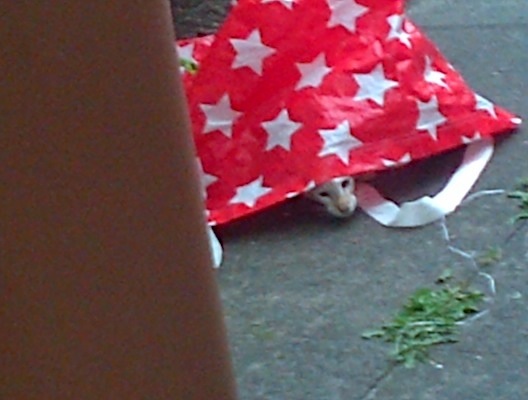 I’m not keeping up very well with my pointless blog at the moment. Ah well, three posts are needed today. The cats love the big cat bed I have improvised for them under the dining room window.