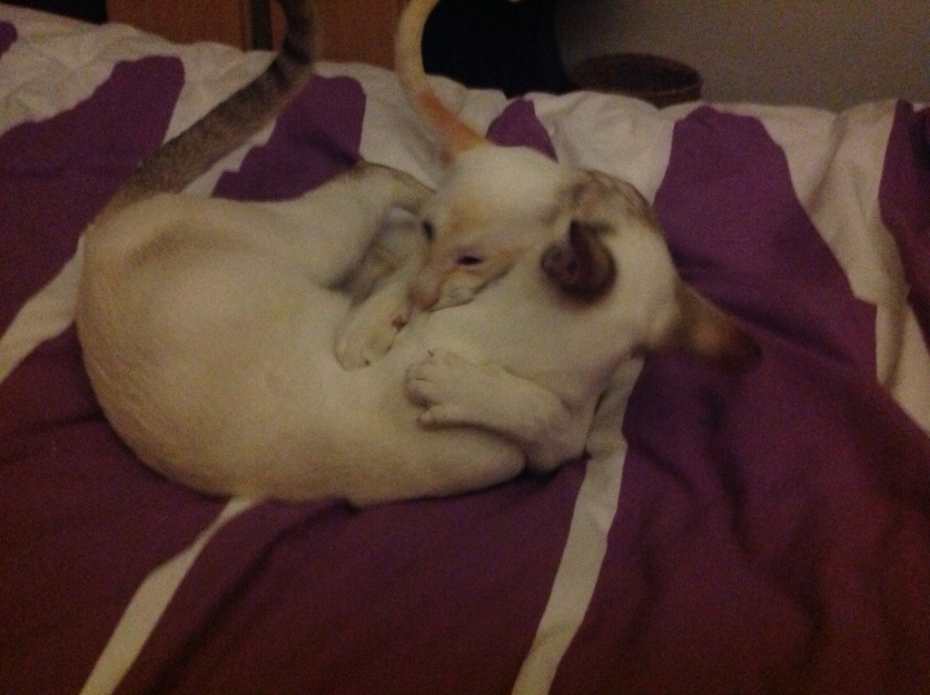 This all took place in slow-motion with no bottle-brush tails. They’re just playing, despite all the teeth on display. In two minutes, they’ll be cuddled up asleep together.