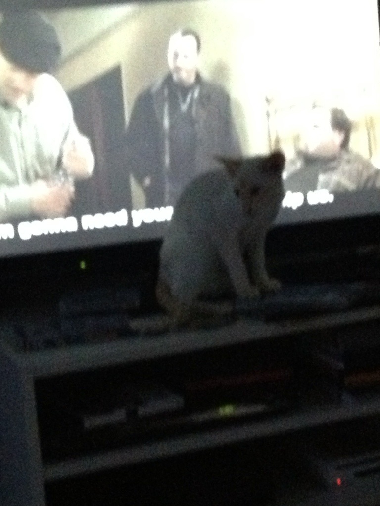 Percy is recovering beautifully and is currently warming my lap, while Milka warms John up. This dreadful photograph shows him preventing us from watching that excellent 1998 action film, Ronin. Jean Reno is one of our favourite actors and the film is set in France. I’m confident next week’s holiday will not be as exciting or as dangerous.
