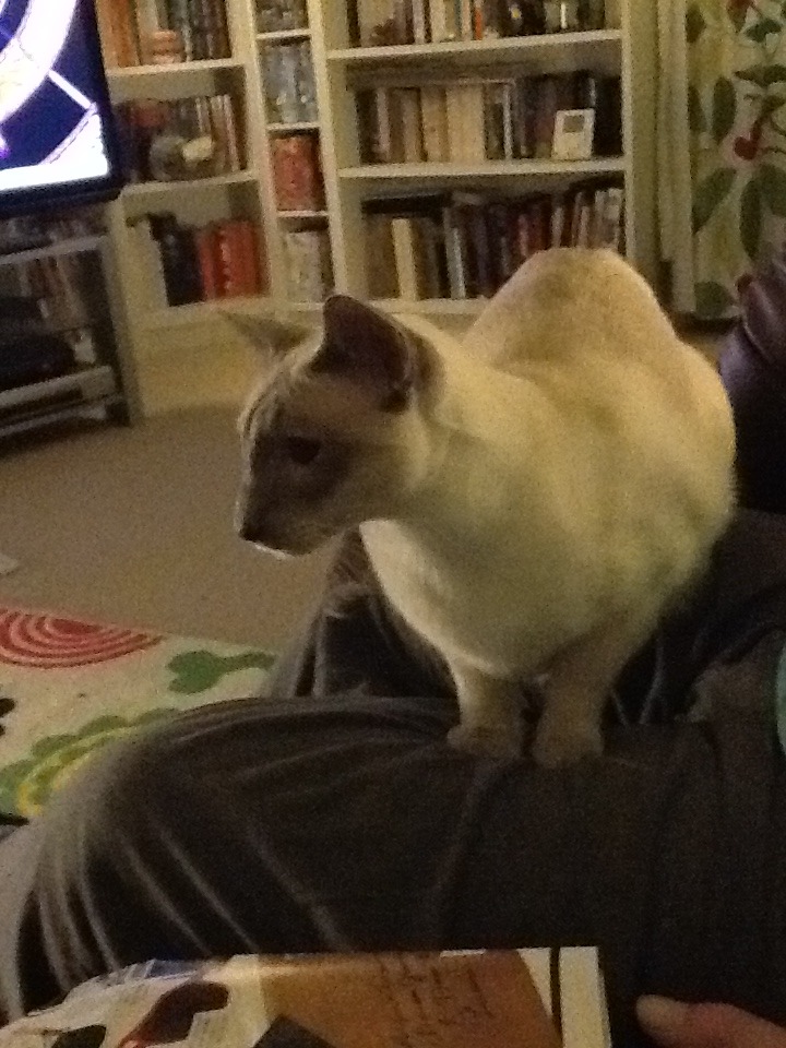 Rosie with grumpy fur standing on end. Cosmo has been picking on her today.
