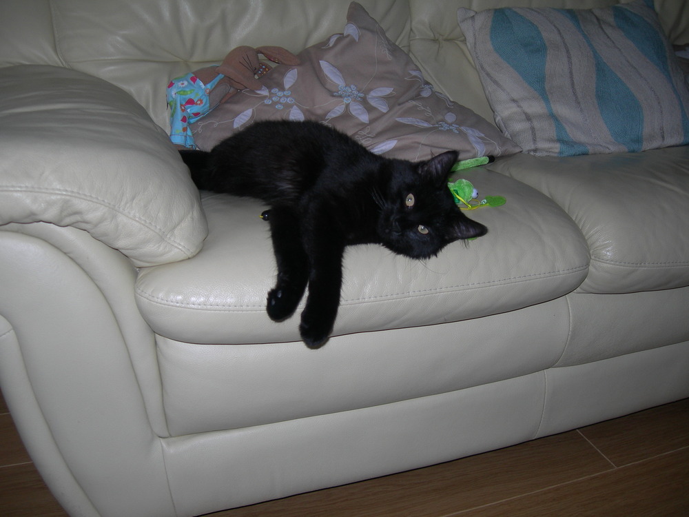 He is the sweetest cat I have ever met. (Have had a few cats in my time) He is gentle and patient with children: even when Ellie dragged him along the hall by his tail!! As most cats, he runs to meet us when we get home, but occasionally walks with us the girls’ school in the morning, waits patiently at the gate for me then accompanies me back home. He has walked with the family all the way to the local Asda supermarket – which is just over a mile away. He sat beautifully by the bike shed until we had bought food, then walked back with us. He was rather tired about 5 mins from home so allowed Lucy to carry him (which is rare)!