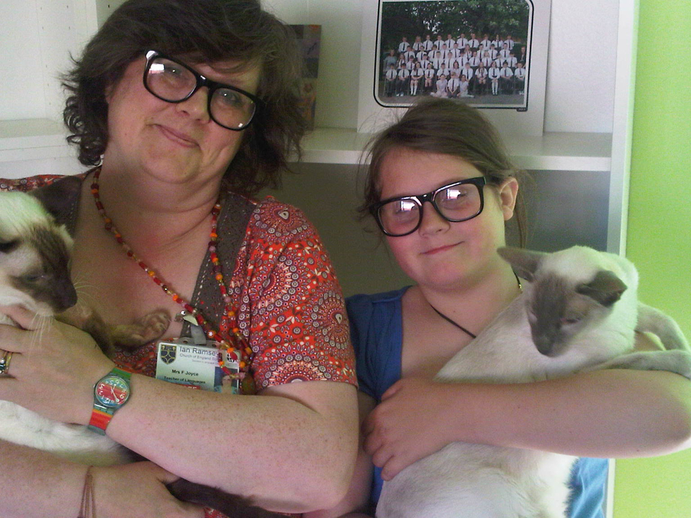 Izzy and I are both wearing our new joke specs from the pound shop because they make us laugh and behind us on the shelf is Isobel’s Y6 leavers’ photograph. New exciting times are ahead after our hard-earned break.