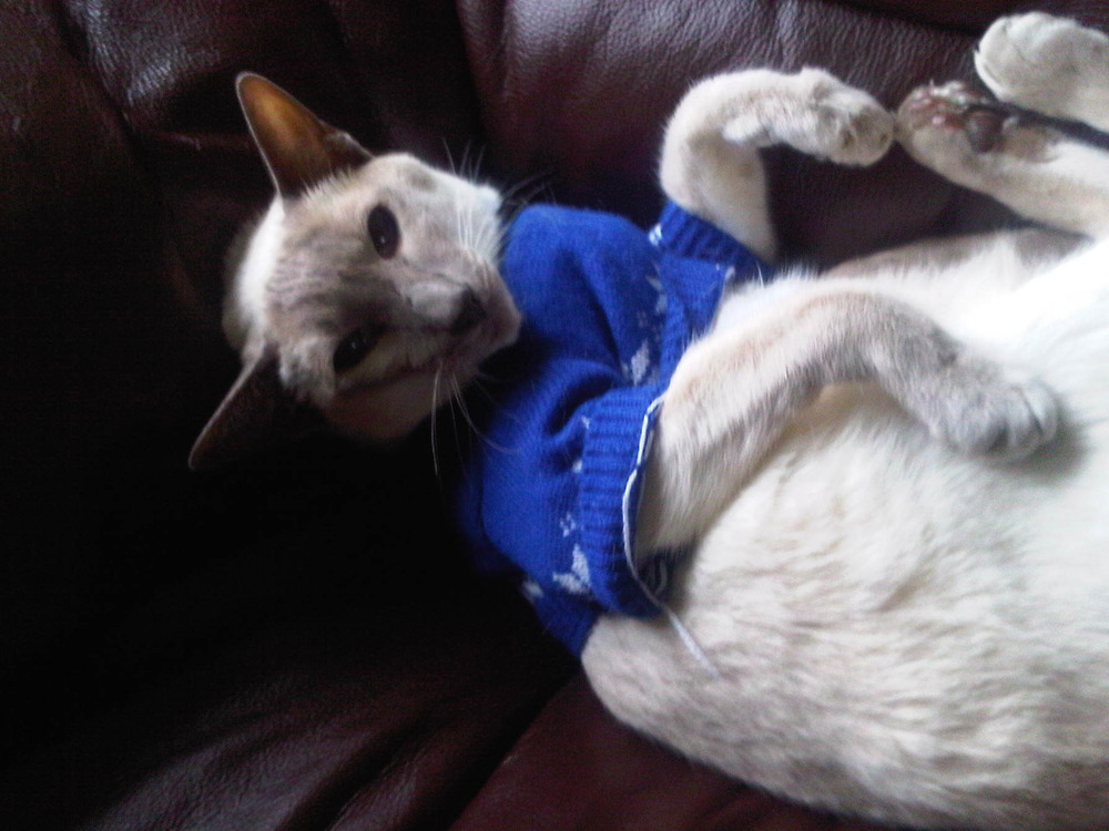 When you’re an 11 year-old girl, it’s the summer holidays, it’s pouring down with rain and your mum has banned you from watching the television, then it’s clearly time to dress the cat up in a teddy bear’s jumper.