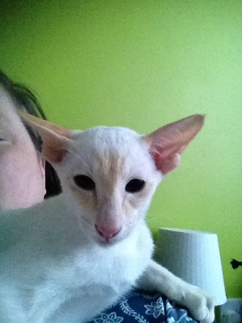 I once had a much loved, very affectionate Siamese cat named Hershey. He liked to cuddle on my left shoulder. Every time I sat down, he was there. It looks as if Percy might be going to be a shoulder cat too. He just hasn’t chosen his shoulder yet.