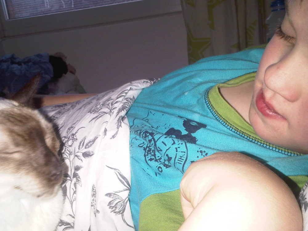 Cosmo and Willow have worked out how to get up on to Ted’s cabin bed, which is about 150cm off the floor. It’s fun, because they use the ladder to get down again. Now the heating has gone off with the warmer weather, the cats are sleeping in lots of new spots.
